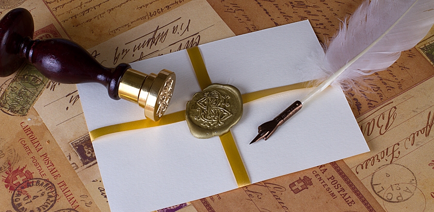 Niet alleen de uitnodiging zelf (op een kaartje of op briefpapier) is ‘bestempelbaar’. Ook je enveloppe kun je wat extra cachet geven, bijvoorbeeld door er een zelfontworpen logo of afbeelding op te stempelen.